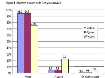 Se debe de tener precaución a la hora de analizar estos datos, puesto que a pesar de que el porcentaje no sea muy elevado, las consecuencias pueden ser incluso mas dañinas para los menores, que el simple acoso escolar. No pueden encontrarse a salvo ni en su propio dormitorio, donde les llegan por email o a través de oros medios, cmo puede ser el teléfono móvil, las amenazas o burlas.
